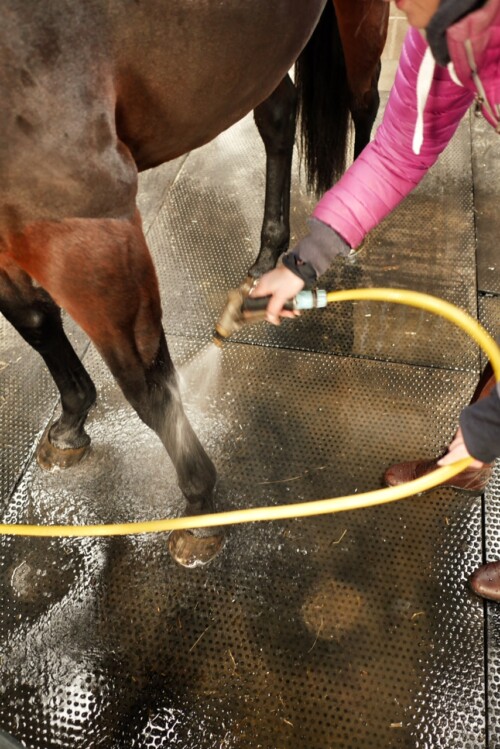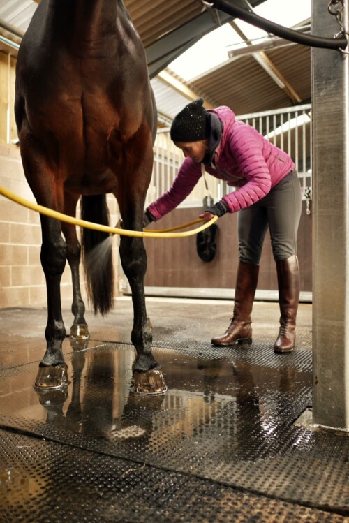 Offering a warm-up/down or drying facility the low glare shortwave infrared lamps are positioned to warm all the horse. For the colder days we have a Hot Horse shower for washing, much better for horse and handler!